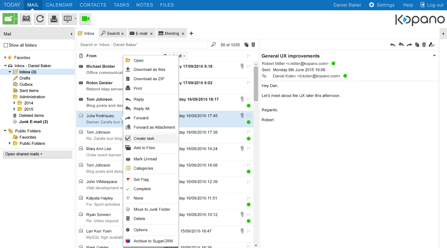 Sie suchen nach einer Groupware-Lösung um E-Mail, Kalender, Kontakte, Aufgaben und Notizen in ihrem Team gemeinsam nutzen zu können. Dann ist Kopano die Ideale Grundvoraussetzung.